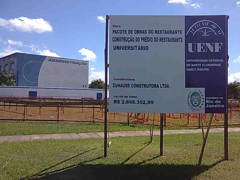 Mas como a construção feita pela Zuhase Construtora não foi devida acompanhada pelos fiscais da UENF, agora estamos em meio a uma reforma que custará aos cofres estaduais a bagatela de R$ 1.496 milhão como mostra placa abaixo.